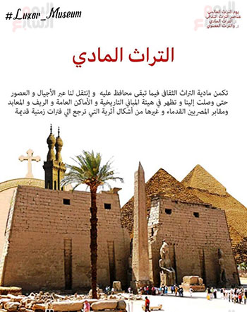 متحف الأقصر يحتفل بـ يوم التراث العالمى على طريقته الخاصة مدير المتحف يستعرض تاريخ إنشائه فى 1975 بحضور رئيس فرنسا ويعرض تاريخ قطع تراثية داخل المتحف ويؤكد نعرض مفهوم التراث وأنواعه بشكل مختلف